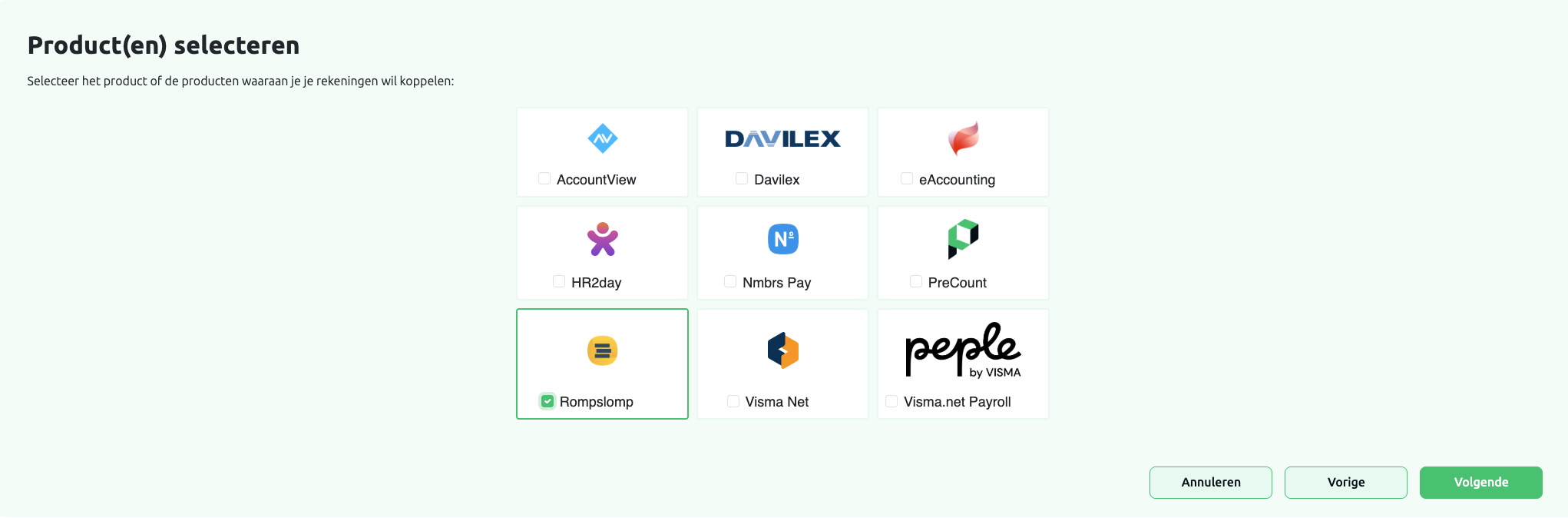 - Koppel de nieuwe rekening(en) aan de juiste Rompslomp-rekening bij Koppel aan rekening.