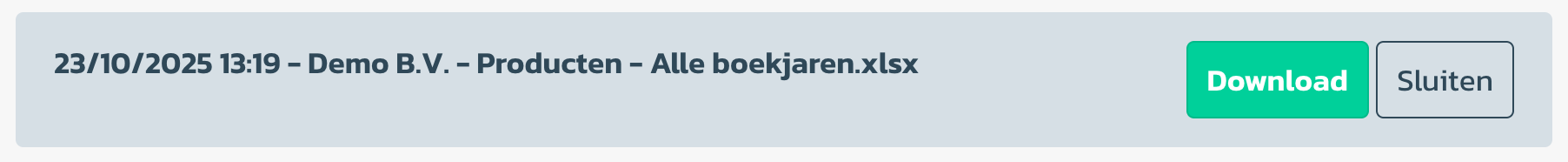 Wanneer de export klaar is kun je het Excel bestand downloaden door op de groene 'Download' knop te klikken.