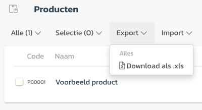 Het is mogelijk om vanuit Rompslomp producten te exporteren als een Excel bestand (.xls). Dat doe je op de volgende manier: